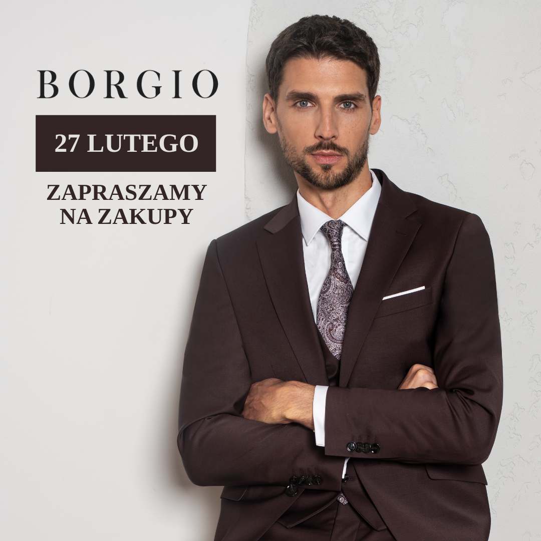 BORGIO to marka odzieżowa dla mężczyzn inspirowana włoskim stylem, jakością wykonania i materiałami wysokiej klasy. Il taglio naturale to po włosku naturalny krój. To dzięki niemu odzież BORGIO idealnie dopasowuje się do ciała. Kolekcje BORGIO obfitują w eleganckie propozycje na formalne okazje, jak i wygodne stylizacje na co dzień. Flagowym produktem marki BORGIO są świetnej jakości garnitury, marynarki i koszule, a w kolekcjach znajdują się również stylowe kurtki i płaszcze, komfortowe spodnie, koszulki polo, t-shirty, obuwie oraz liczne akcesoria.